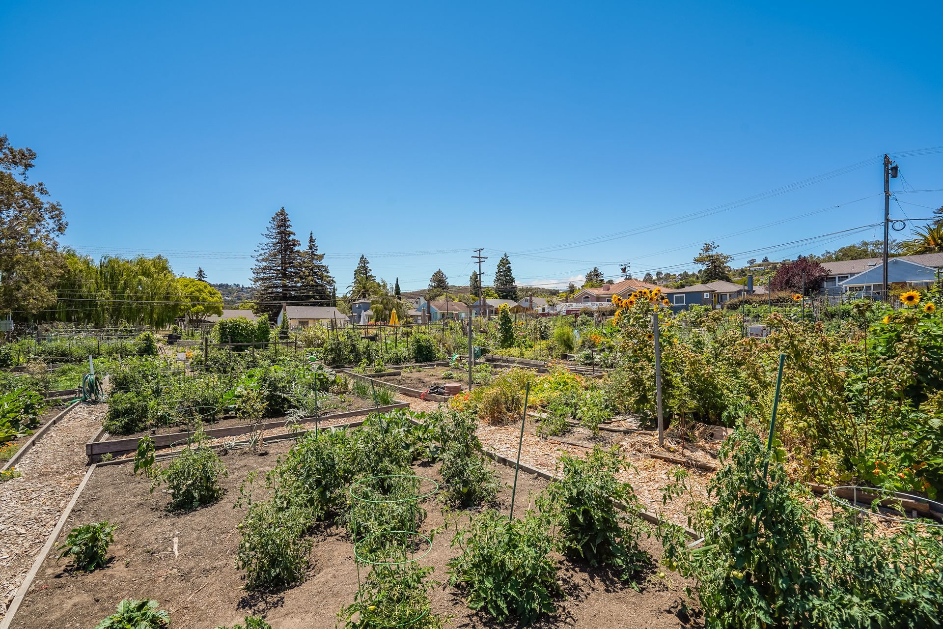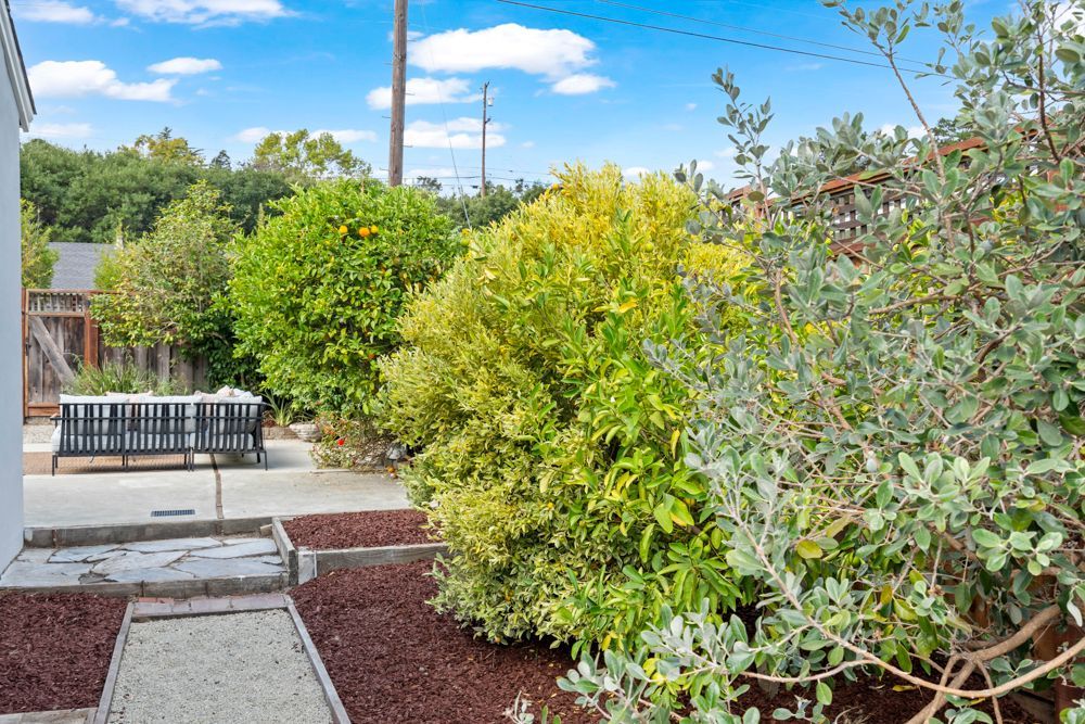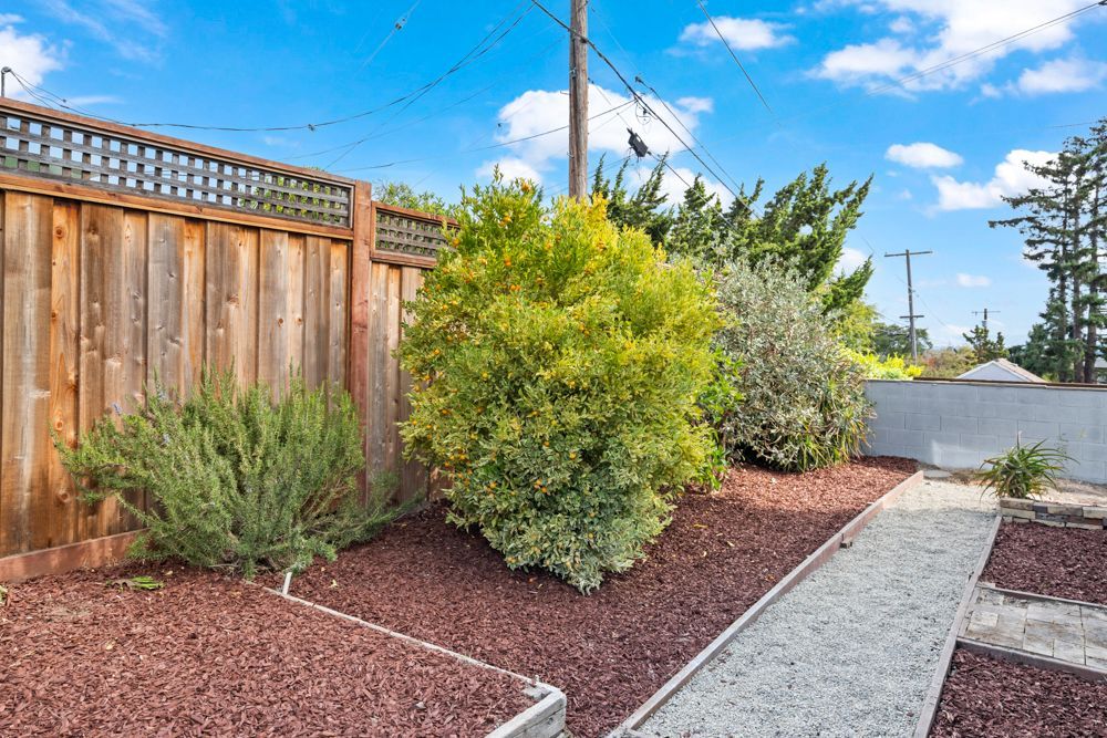 The fenced side yard offers a concrete patio bordered by established landscaping—including climbing roses, a guava tree, lemon tree, calamansi, and bamboo behind the fence for added privacy and greenery. The front and side yards provide just enough space for gardening, lounging, or entertaining—and plenty of potential to create your own lush oasis over time.